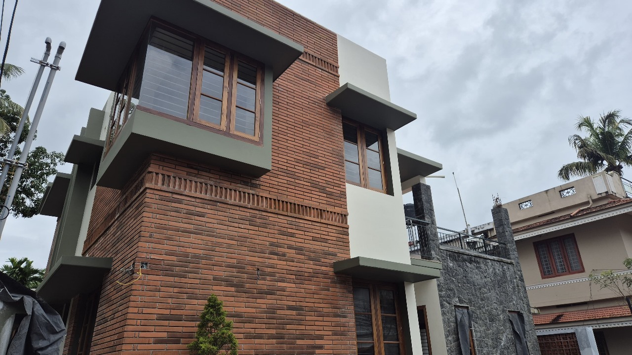 Developed on 5.5 cents of land at Eroor, Thripunithura, Ernakulam, this refined four-bedroom residence of approximately 2,750 sq. ft., owned by Padmanabhan & Revathi, is thoughtfully crafted to balance everyday functionality with elegant architectural detailing.
