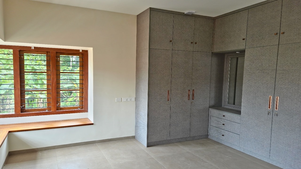 Sprawling across 55 cents along the serene riverbanks of Karumaloor, Aluva, this thoughtfully crafted four-bedroom riverside residence of approximately 4,500 sq. ft., owned by Ranjit & Parvathy, harmoniously blends sustainable design, modern comfort, and immersive natural living.