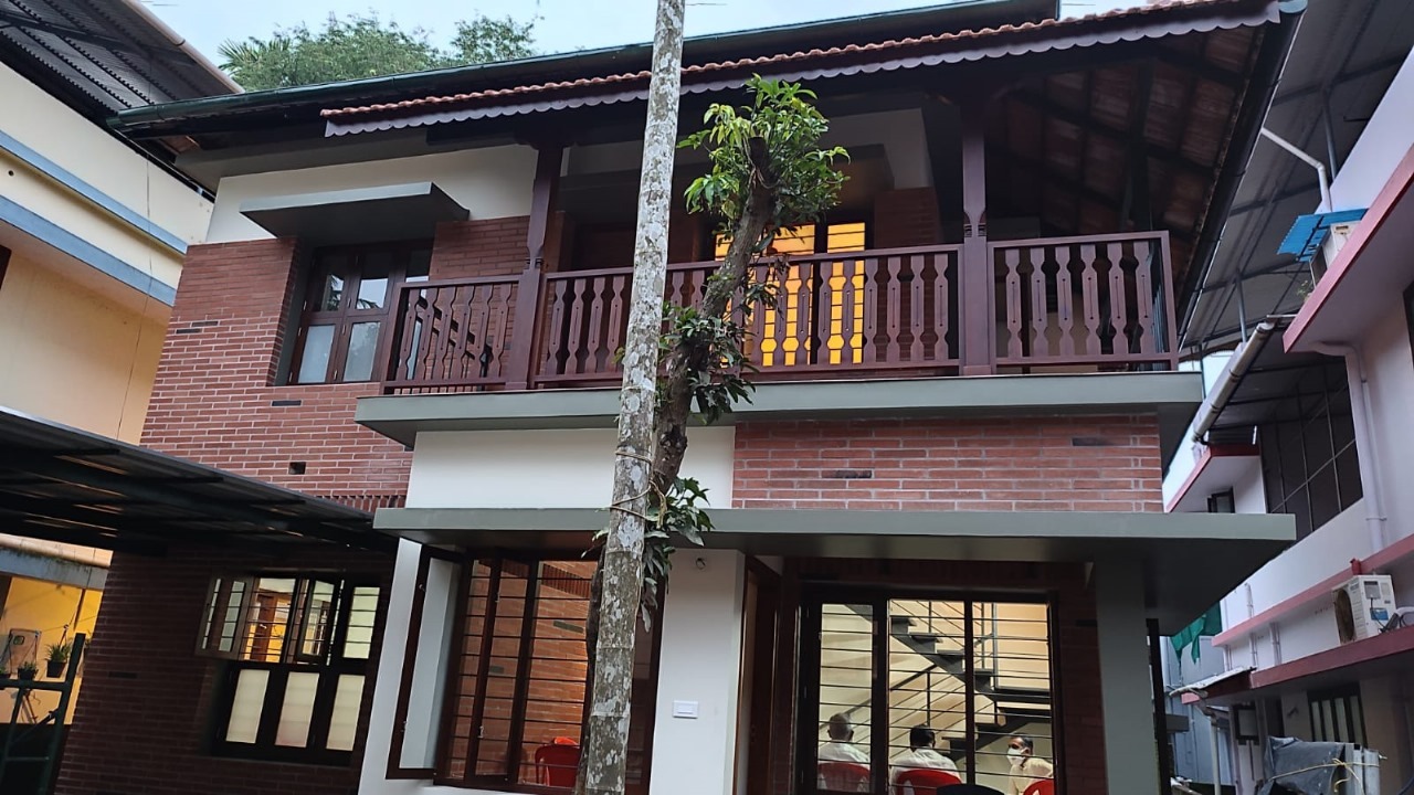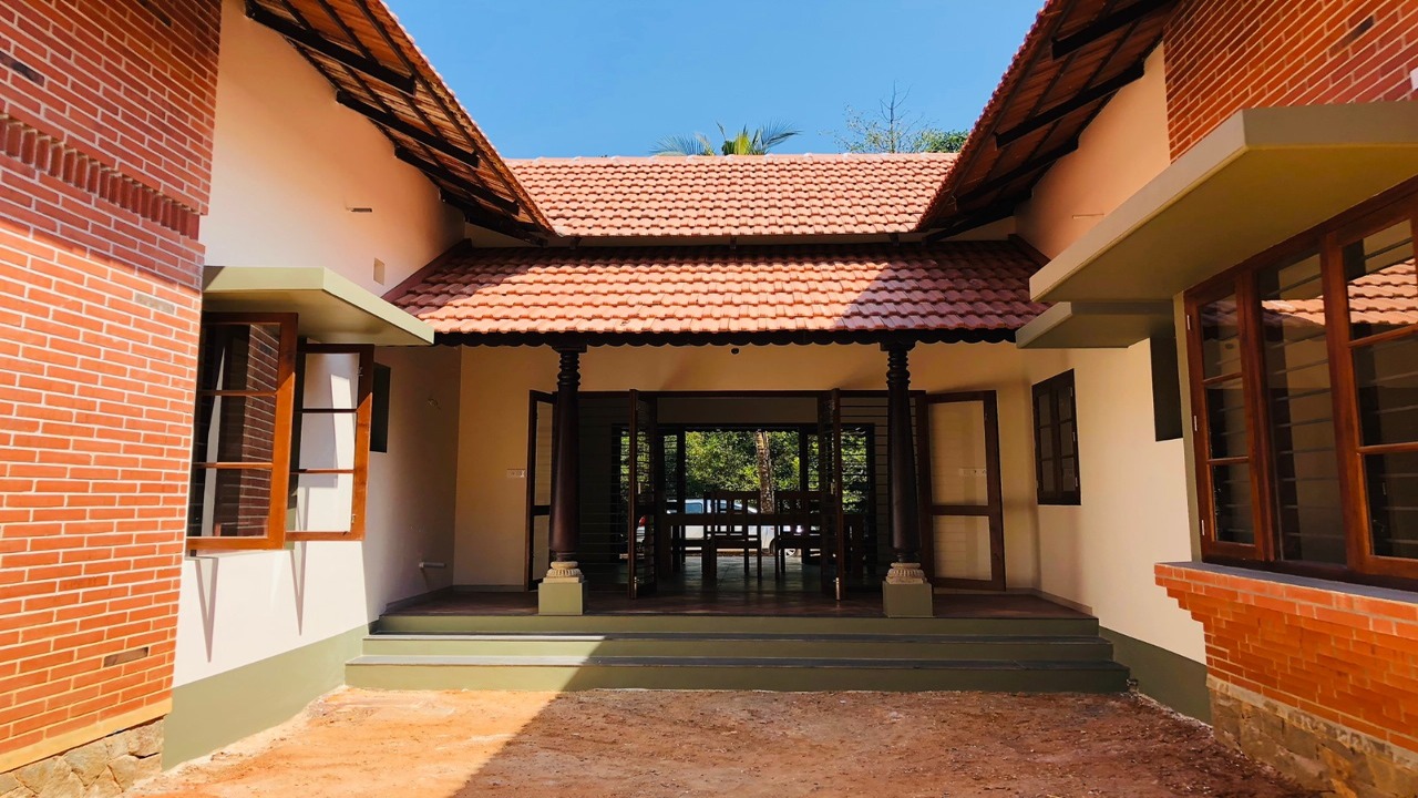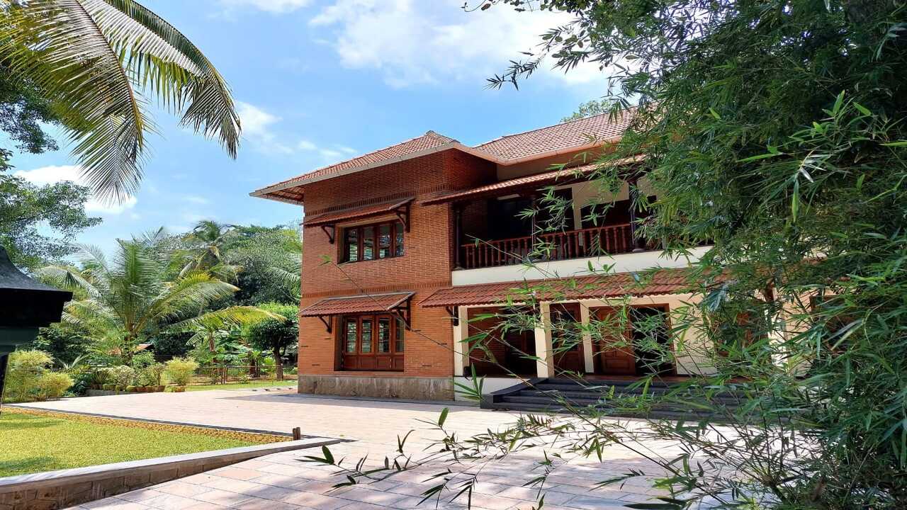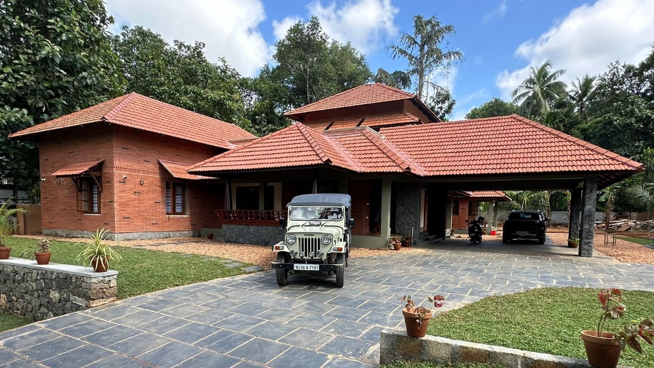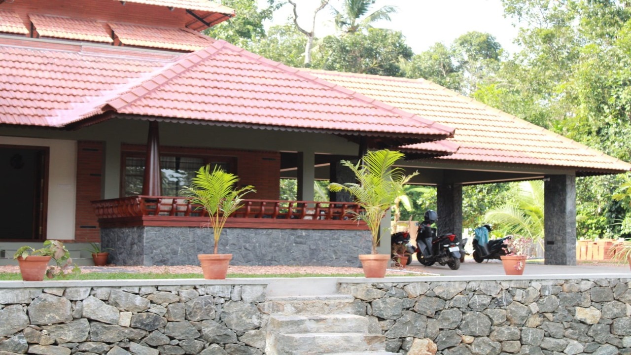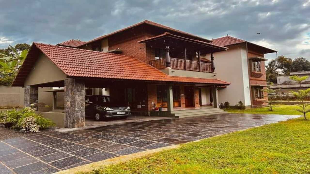 Thoughtfully designed five-bedroom home in Paippad, Thiruvalla, Kerala, owned by Mr. K. T. Joseph, Kaniyandra. Perfectly blends traditional Kerala architecture with modern comfort and sustainable living.