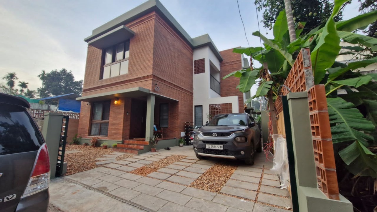 Located on 5 cents of land in Kalamassery, Ernakulam, this thoughtfully crafted three-bedroom smart residence of approximately 2,050 sq. ft., owned by Anish & Divya, seamlessly blends contemporary architecture with sustainable, technology-driven living.